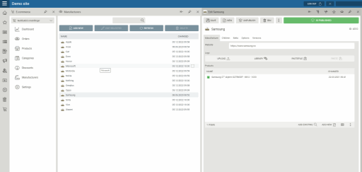 If you double click a brand, a dialogue window where you can edit the brand is displayed. A brand has a relation to it's products, their website url and a logo. If you require any additional properties, you can create a new contant class that inherits from it, and add the properties you require.