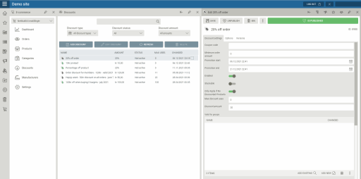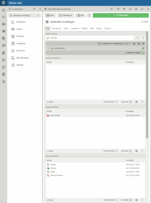 The e-commerce module has a lot of functionality, so to get an overview of what it contains, we'll briefly go through each of the tabs in the module, before going deeper into the more hardcore parts of the system.